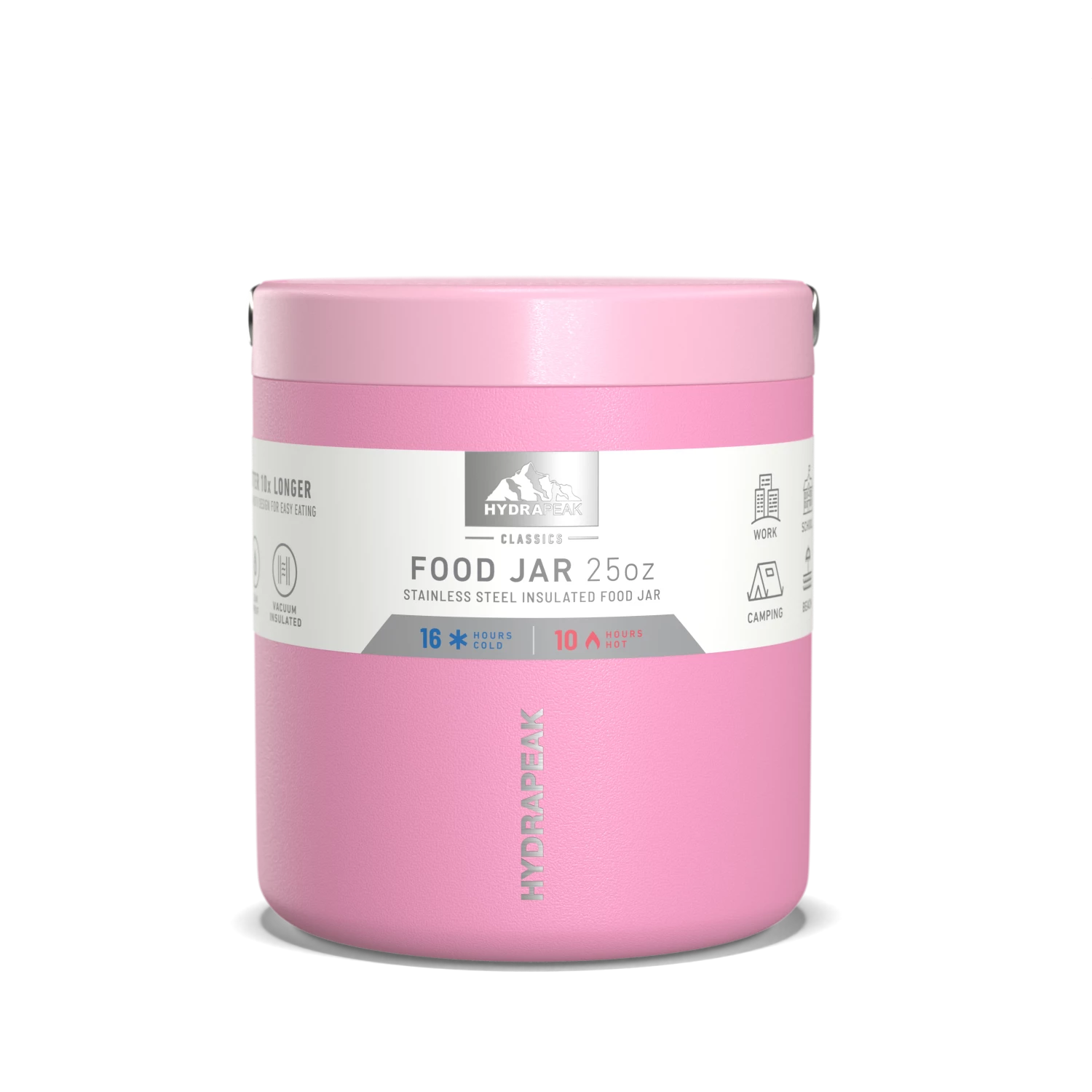 - ALL DAY INSULATION; Hydrapeak’s double wall vacuum insulation technology helps their insulated food container keep contents HOT for 10 HOURS, and COLD for 16 HOURS, making it the perfect thermos lunch box for kids, taking to school, or to the office