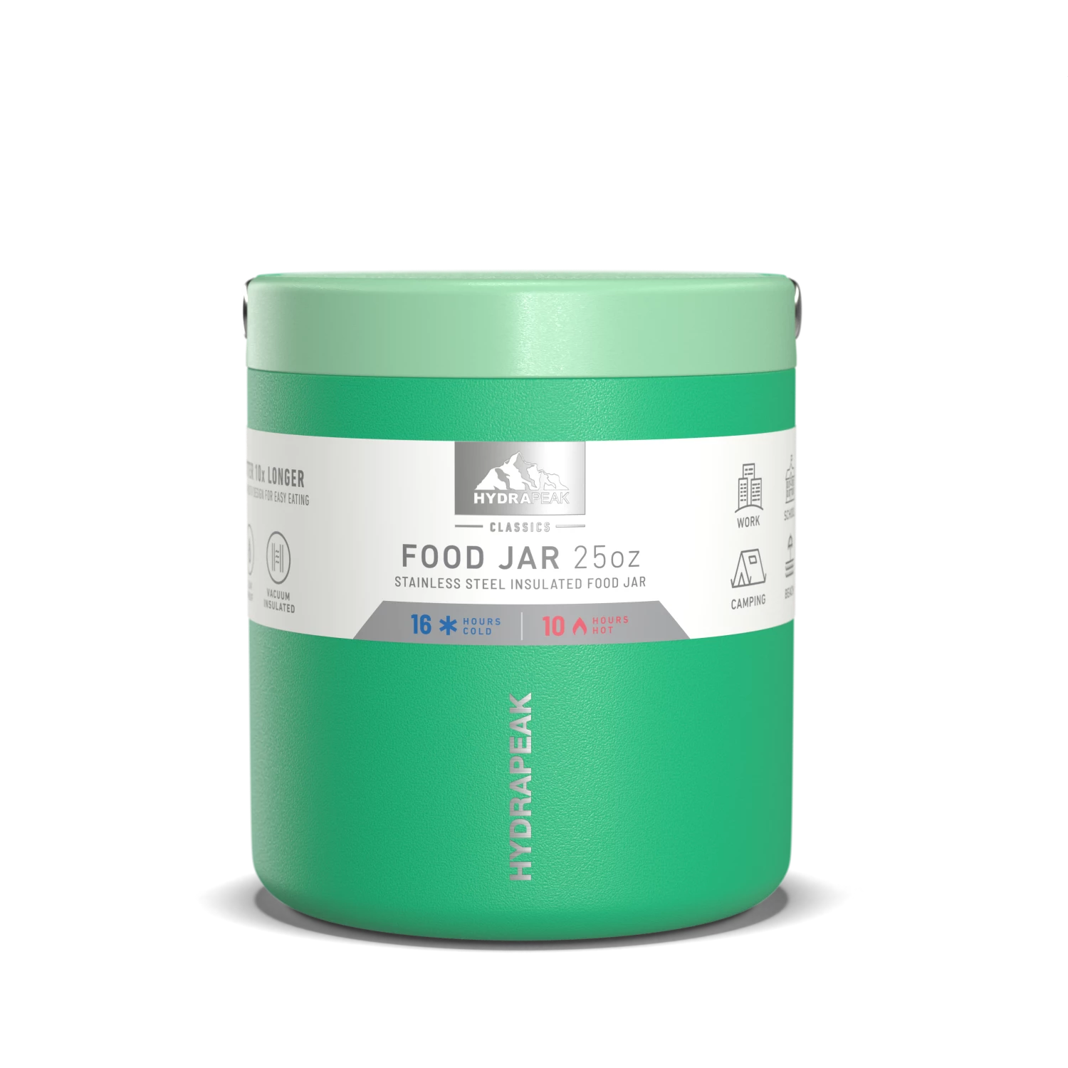 - ALL DAY INSULATION; Hydrapeak’s double wall vacuum insulation technology helps their insulated food container keep contents HOT for 10 HOURS, and COLD for 16 HOURS, making it the perfect thermos lunch box for kids, taking to school, or to the office