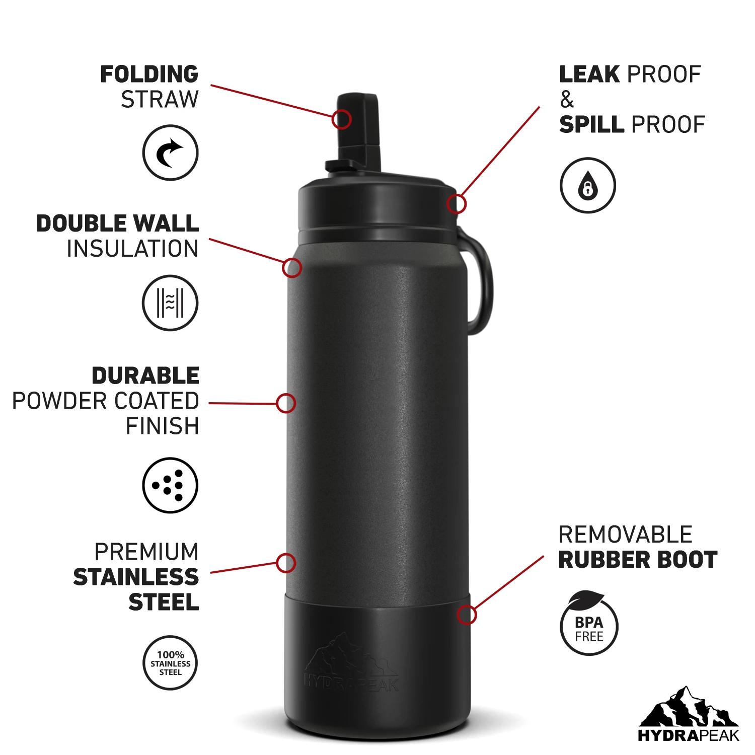 - The Hydrapeak sports water bottle comes in a variety of aesthetic colors and sizes to choose from. Our metal water bottle comes in 26oz, 32oz, and 40oz sizes, making it a great kids water bottle and an adults water bottle.