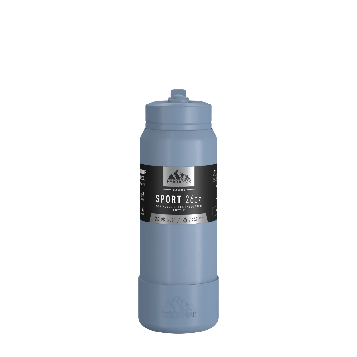 - The Hydrapeak sports water bottle comes in a variety of aesthetic colors and sizes to choose from. Our metal water bottle comes in 26oz, 32oz, and 40oz sizes, making it a great kids water bottle and an adults water bottle.