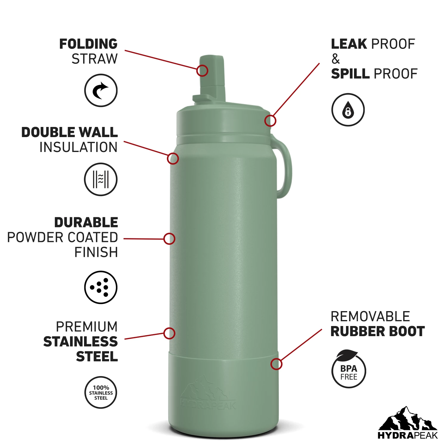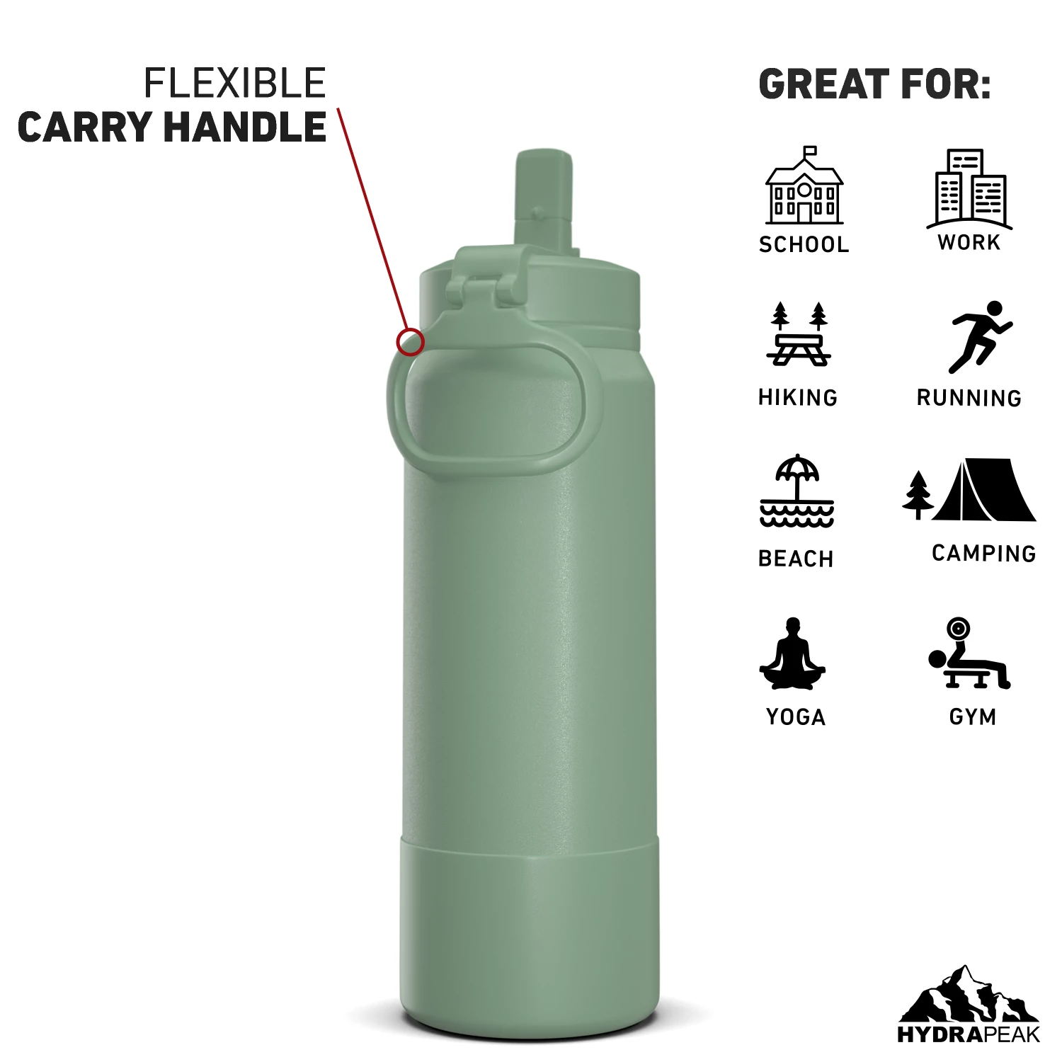 - The Hydrapeak sports water bottle comes in a variety of aesthetic colors and sizes to choose from. Our metal water bottle comes in 26oz, 32oz, and 40oz sizes, making it a great kids water bottle and an adults water bottle.