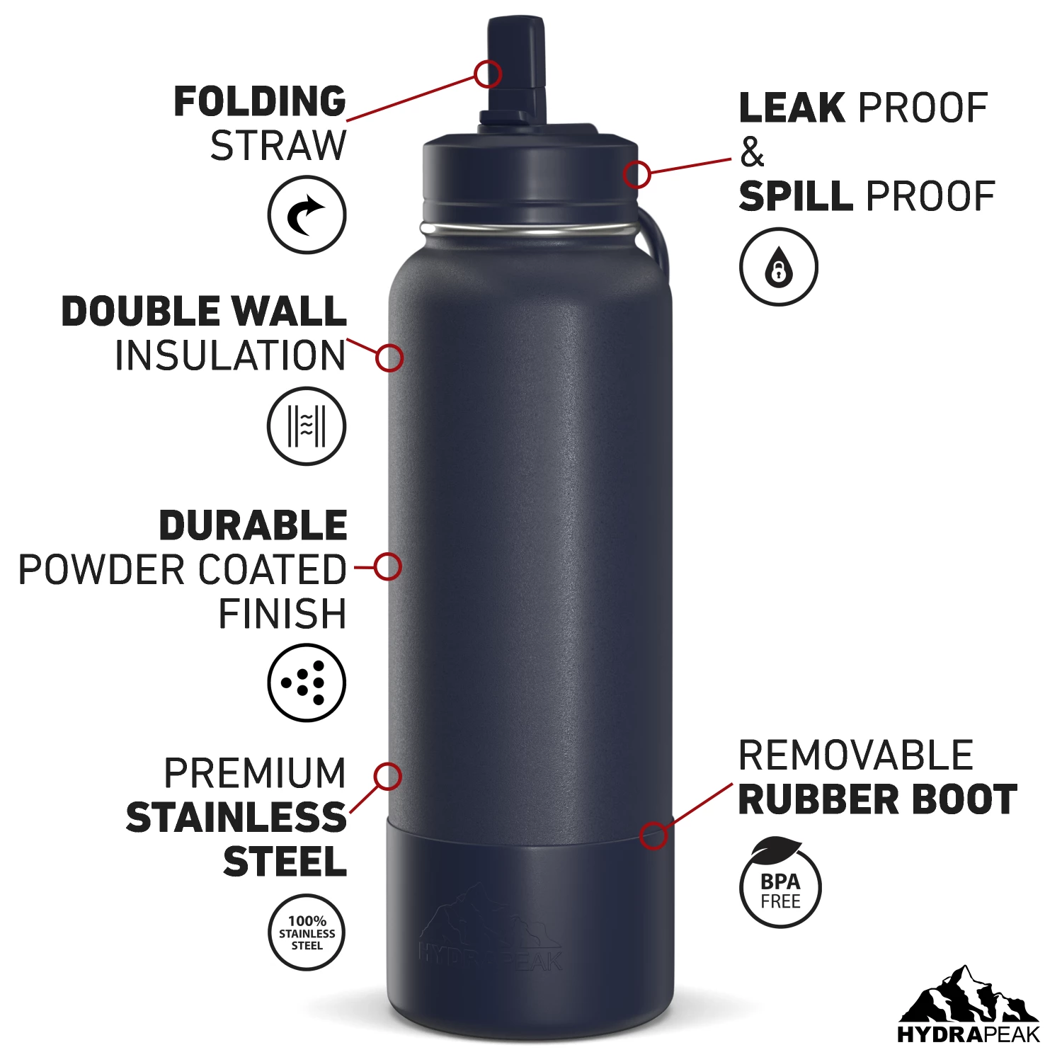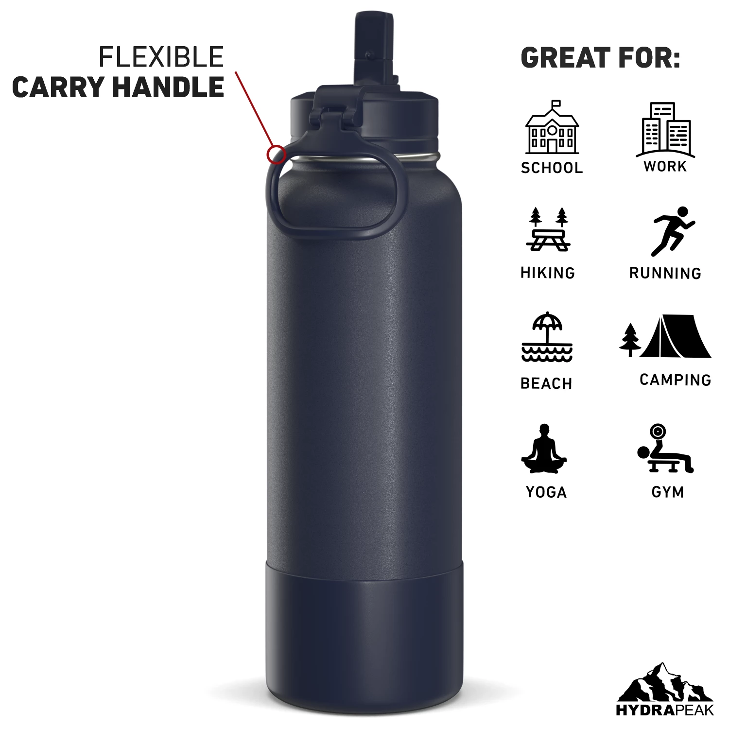 - The Hydrapeak sports water bottle comes in a variety of aesthetic colors and sizes to choose from. Our metal water bottle comes in 26oz, 32oz, and 40oz sizes, making it a great kids water bottle and an adults water bottle.