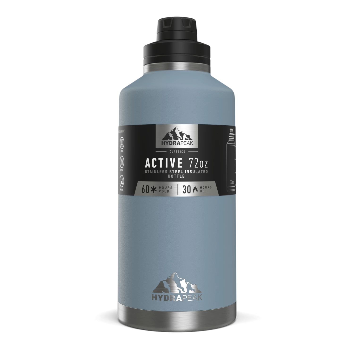 - OUR BIGGEST BOTTLE YET; Go one step up from a regular 64 oz water bottle with Hydrapeak’s 72 oz stainless steel water bottles! This Jug is capable of holding AND insulating over half a gallon of water or your favorite beverage all day long