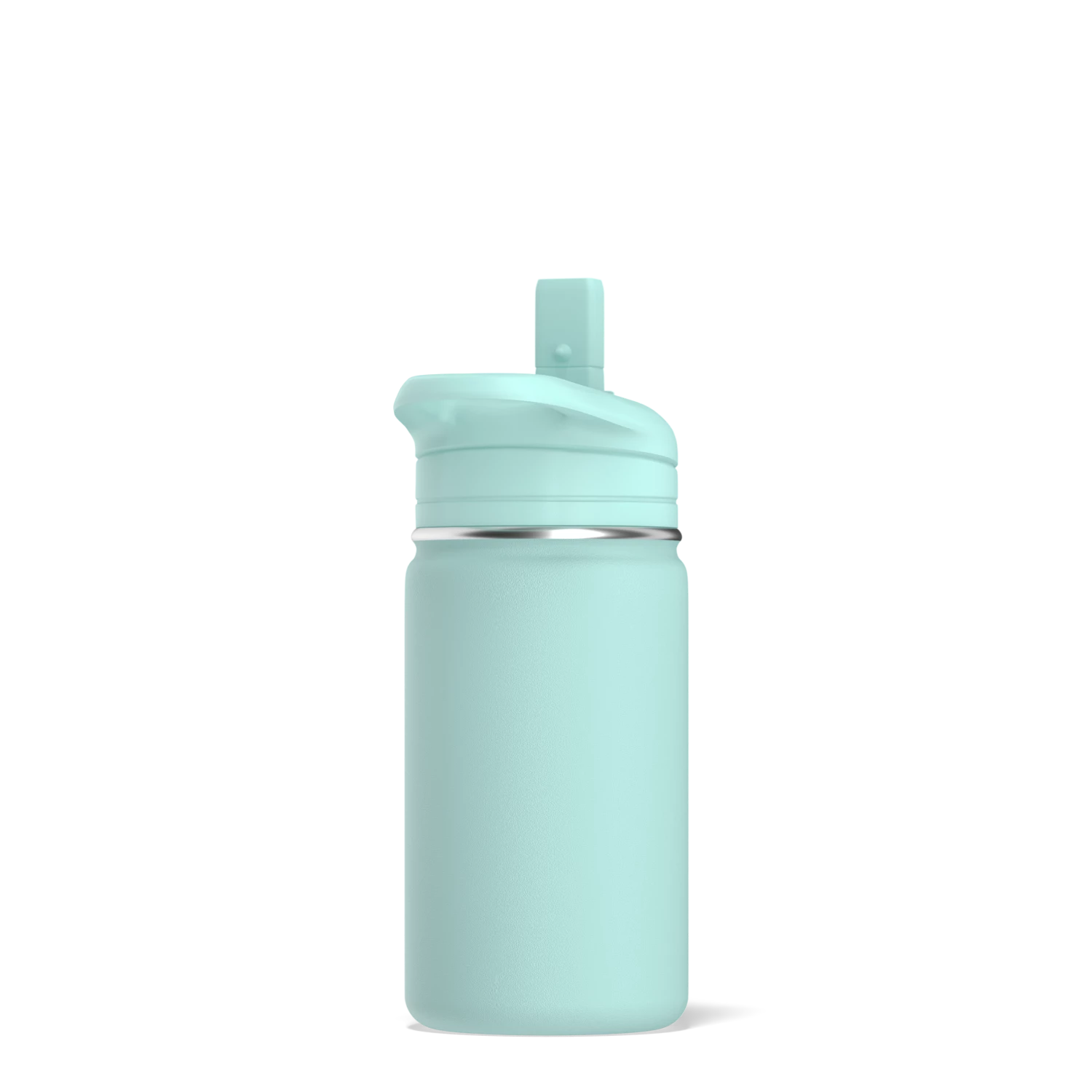 Designed with kids in mind. 14oz mini kids water bottle combines a bite valve with a stem straw tube; This detachable one-piece component is simple for kids to use and simple for parents to clean.