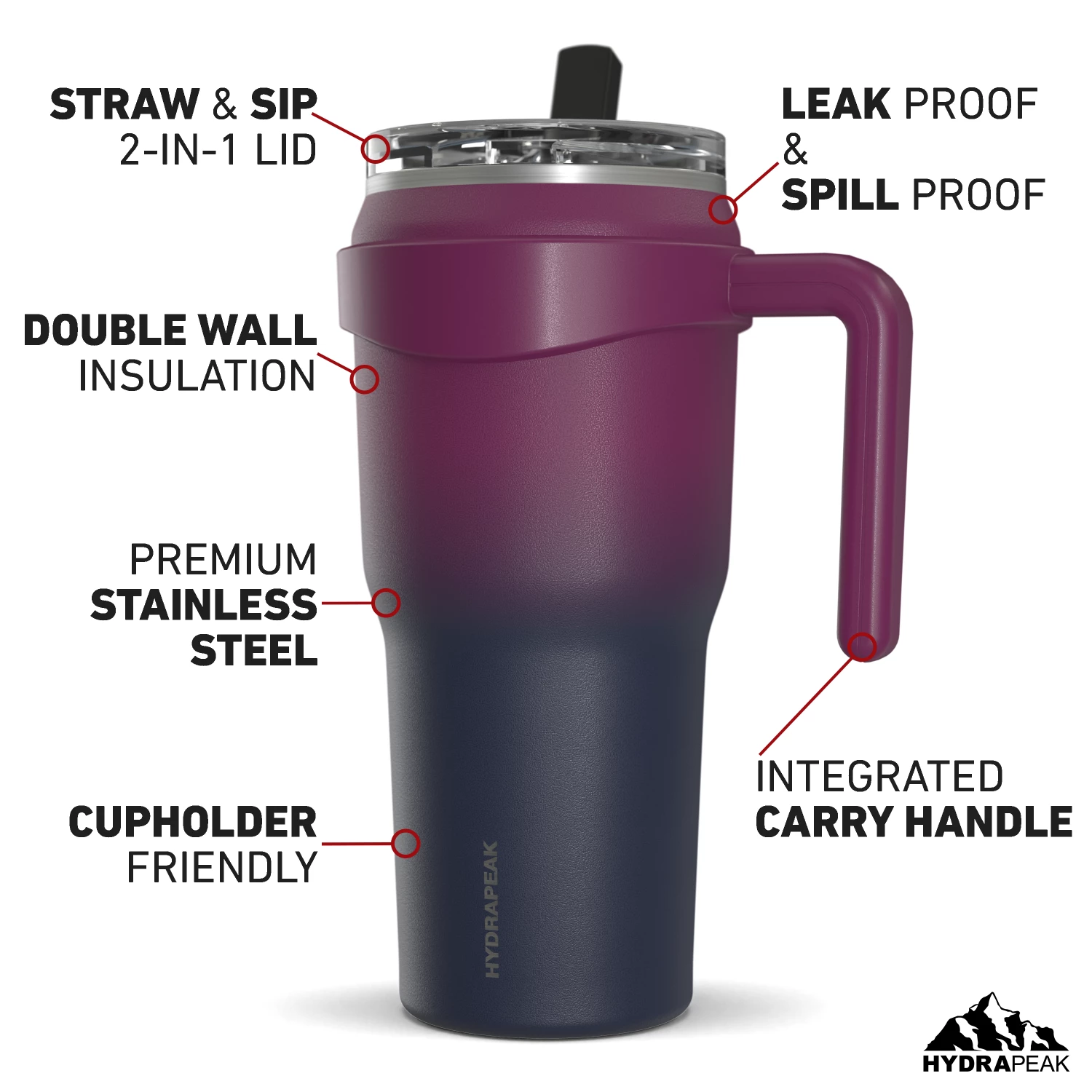 - LEAK-PROOF and SWEAT-PROOF; Hydrapeak created this 40 oz tumbler so that whatever you put in it, stays in, No more worrying about leaks, spills, or sweating, thanks to the innovative design of this insulated coffee mug with handle