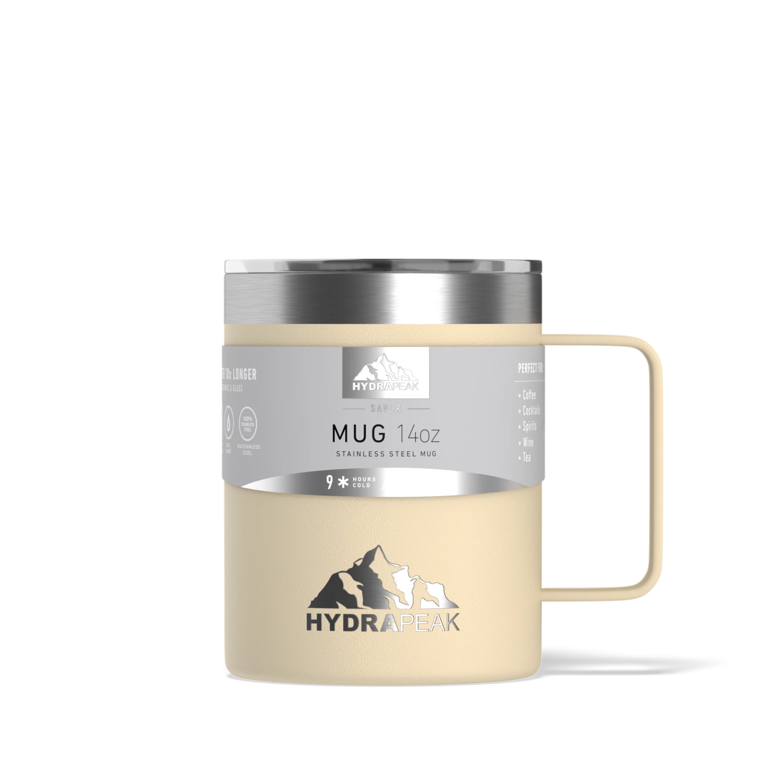 The NEW lightweight 14-ounce coffee mug is perfect for camping, tailgating, and picnics. Whether you’re sipping coffee, tea, or cold brew you can enjoy the moment anytime anywhere and everywhere with Hydrapeak 14oz stainless steel double vacuum Insulated drinking mug with sliding lid. Grab a refreshing drink at the campsite, BBQ or picnic with an impact resistant shatterproof Hydrapeak 14oz stainless-steel hefty unbreakable reusable, in assortment colors, better than disposable plastic cups travel coffee mug.Â