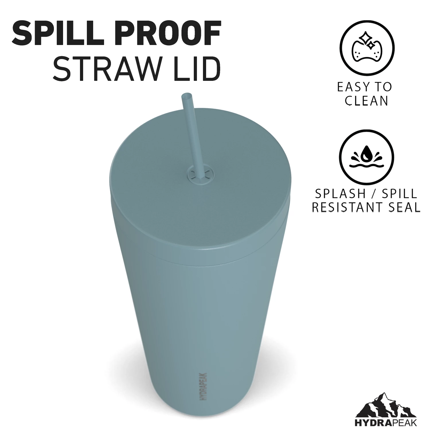 - Spill Proof Straw Lid: Our Hydrapeak stainless steel tumbler features a spill proof lid making the 25 oz tumbler ultra portable. Let spills and leaks be a thing of the past. Additonally the non-slip rubber base prevents sliding and scratching.