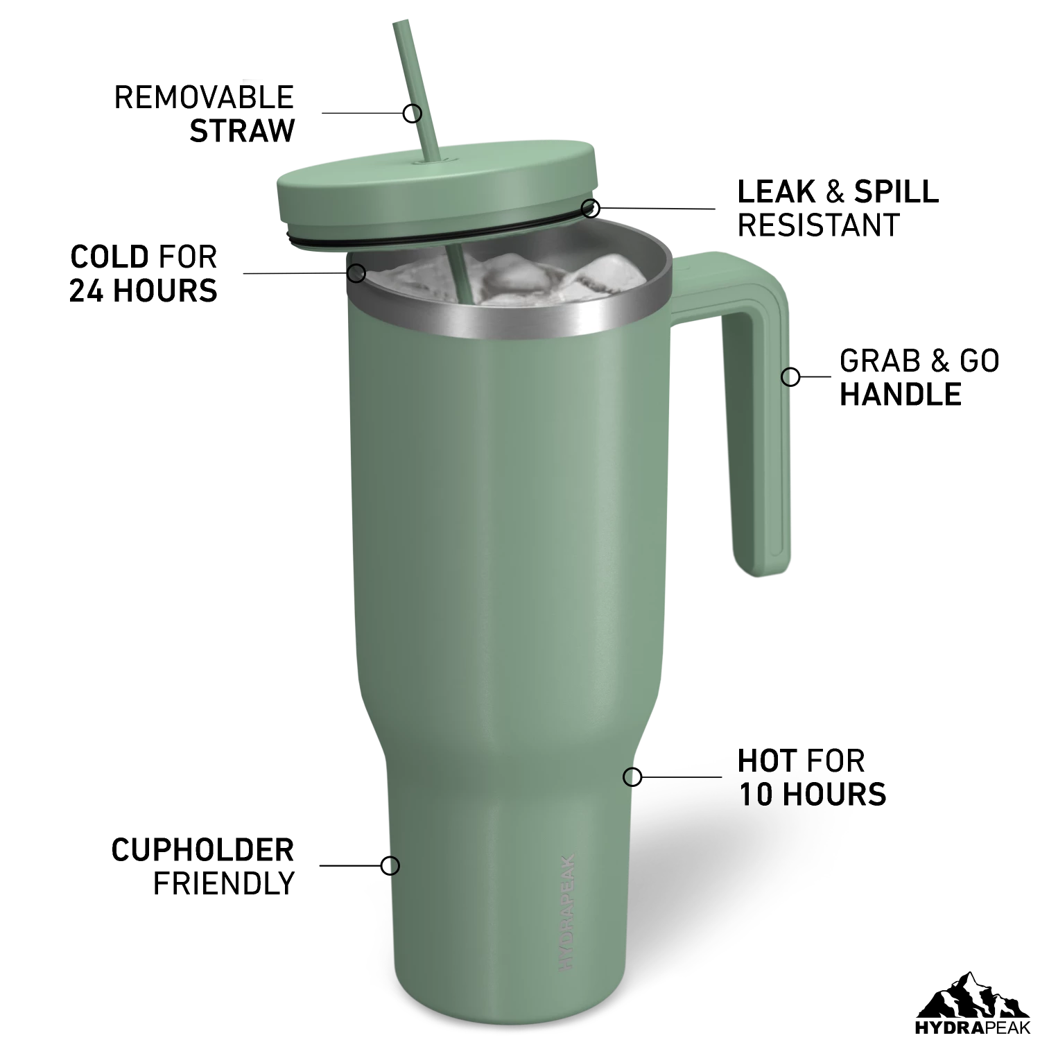 - ALL DAY INSULATION: The 40oz Voyager tumbler with lid and straw features Hydrapeak’s triple layer, double wall vacuum insulation technology, keeping your drinks at the perfect temperature, all day long. Cold for up to 30 hours, and hot up to 12 hours