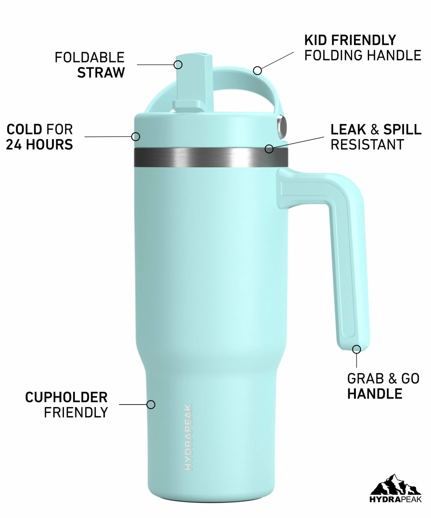 This Hydrapeak Insulated Tumbler with Straw and handle is made of high quality 18/8 food grade stainless steel that makes it sturdier, more durable, and ensures the cup remains odor-free. This travel cup was made to take everywhere and is perfect for kids and adults.