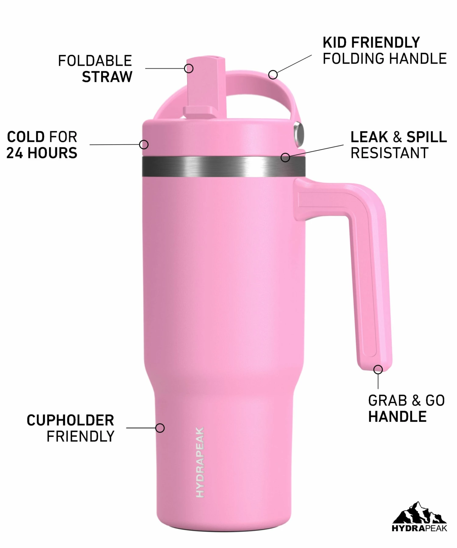 This Hydrapeak Insulated Tumbler with Straw and handle is made of high quality 18/8 food grade stainless steel that makes it sturdier, more durable, and ensures the cup remains odor-free. This travel cup was made to take everywhere and is perfect for kids and adults.