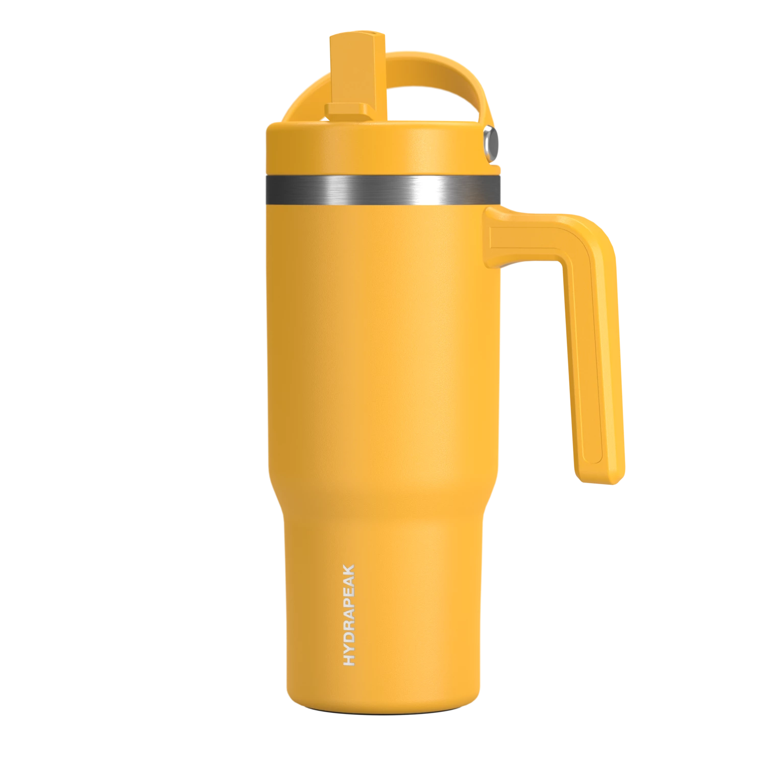 This Hydrapeak Insulated Tumbler with Straw and handle is made of high quality 18/8 food grade stainless steel that makes it sturdier, more durable, and ensures the cup remains odor-free. This travel cup was made to take everywhere and is perfect for kids and adults.